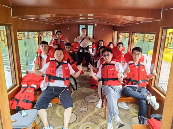 众人的步伐在下山过程中轻快许多,心中充满了喜悦与满足。抵达天池后,大家登上游船,穿戴好救生服,欣赏四周的山川与湖光。游船穿梭于山水之间,大家好似步入了一幅流动的山水画卷,又恍若穿梭于古人的诗意篇章中,人与自然和谐相融,为团建之旅增添了几分诗情画意。
