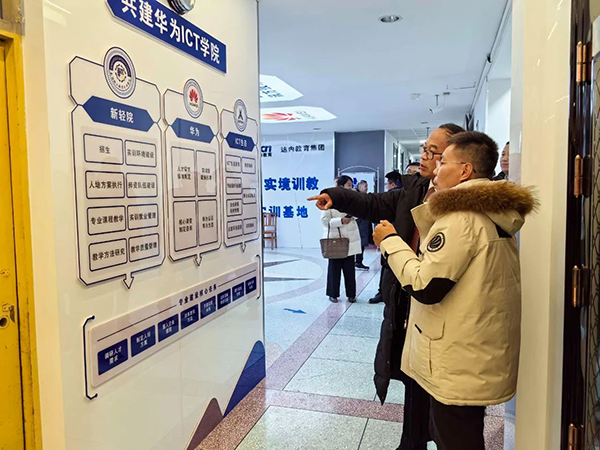 拜访领导第一时间参观了华为ICT学院展厅及文化长廊,对新疆轻工职业技术学院与华为、PA视讯官网技术召开的校企合作共建华为ICT学院的运营模式、人才培养体系、专业建设、课程体系以及华为职业认证、实习就业等内容进行了深入分析。