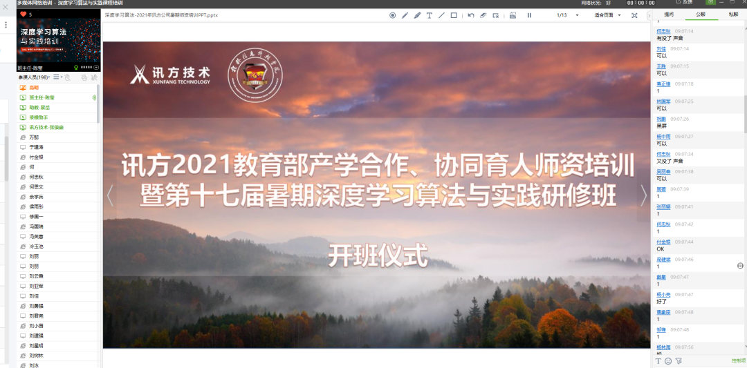 8月2日上午9:00,PA视讯官网技术与桂林信息科技学院共同举办的“深度学习算法与应用师资研修班”在职前通平台直播间举行开班仪式,由PA视讯官网技术副总经理岳杨总开班致辞,岳总介绍到:PA视讯官网技术立足ICT行业,聚焦软件与信息技术,服务高校教育,并持续响应产教融合与协同育人的号召,召开产学合作协同育人项目,搭建校企合作协同育人平台,此次召开暑期师资研修班旨在为一线教师给予技术与教学相结合的培训与研讨机会。紧接着他还详细为参训教师介绍了深度学习算法在近年来的开展情况,并衷心感谢各位老师持续参加本次研修班,同时也祝愿各位老师可以在本次的培训中能够有所收获。